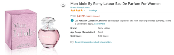 買惹淡香精2023年2月16日Mon Idole By Remy Latour Eau De Parfum For Women 瓶身很漂亮,不過我可能是喜歡前調吧,後面的味道不知為何好像有一種「這啥鬼」的FU。 在Amazon買好像比較便宜: