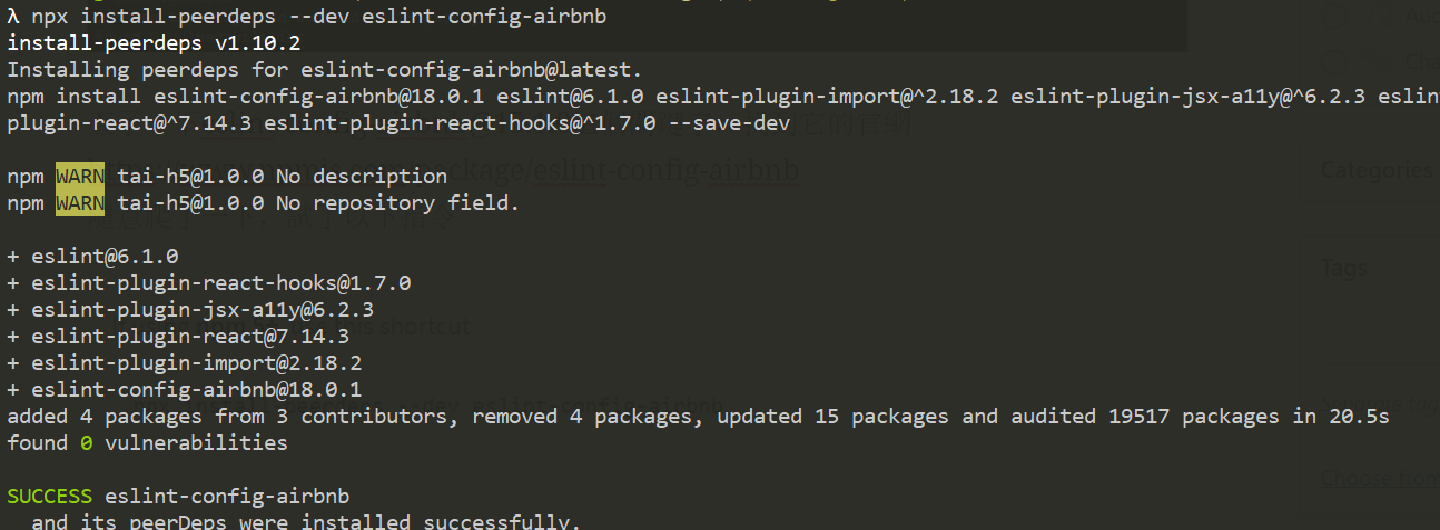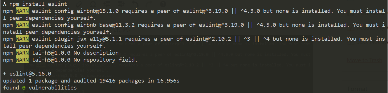 發現安裝eslint也會出現一樣的提示
