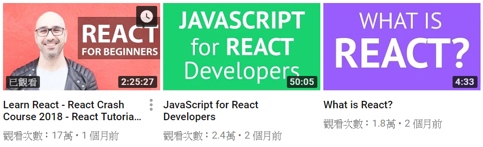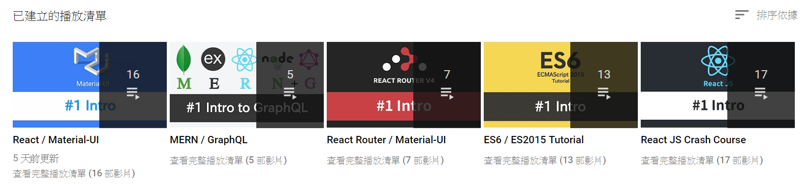影片都還蠻新的,有React.js、ES6的教學,竟然還有GraphQL