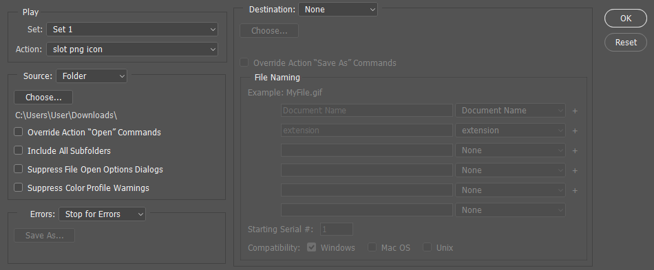 Photoshop圖片批次處理2018年3月2日 選擇資料夾 Action 那邊選擇已經錄製好的動作 錄製動作參考這篇 錄製動作快速處理檔案【Photoshop教學】 @ 奧米加 :: 痞客邦 PIXNET ::