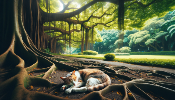 路邊一顆榕樹下貓,好療癒~~
